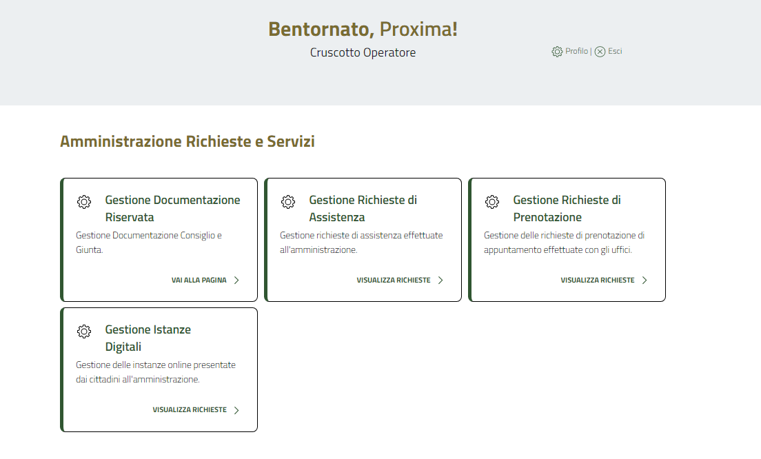 Una volta effettuato il LOGIN l'utente verrĂ autenticato sulla pagina del Cruscotto Operatore: