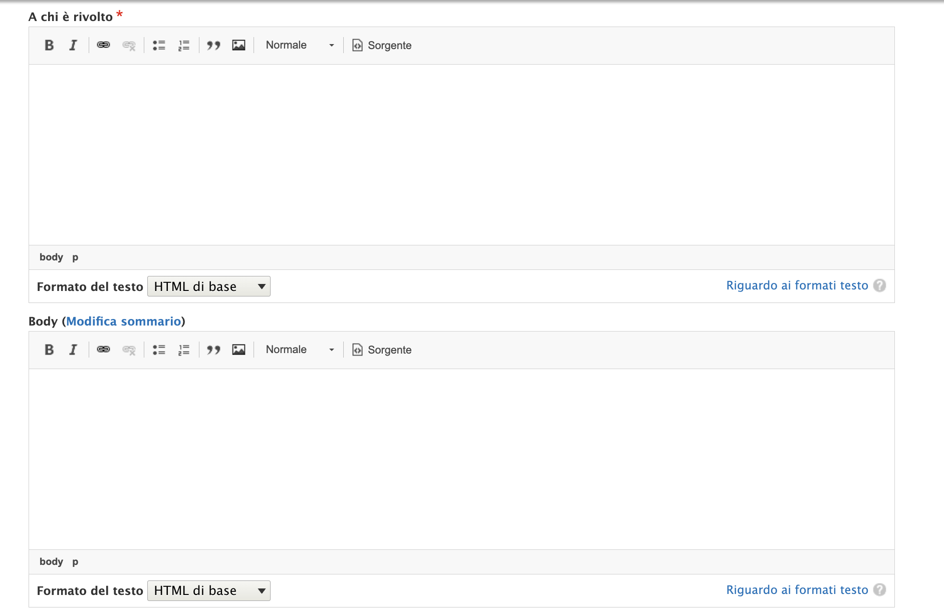 Questo contenuto permette di creare un evento che verrà pubblicato sotto la voce "Vivere il Comune" del menù principale e nel calendario in Homepage.