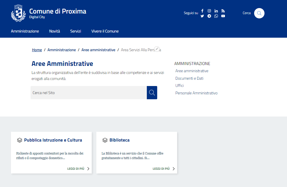 Questo contenuto consente la creazione degli uffici da collegare alle diverse Aree Amministrative del Comune.